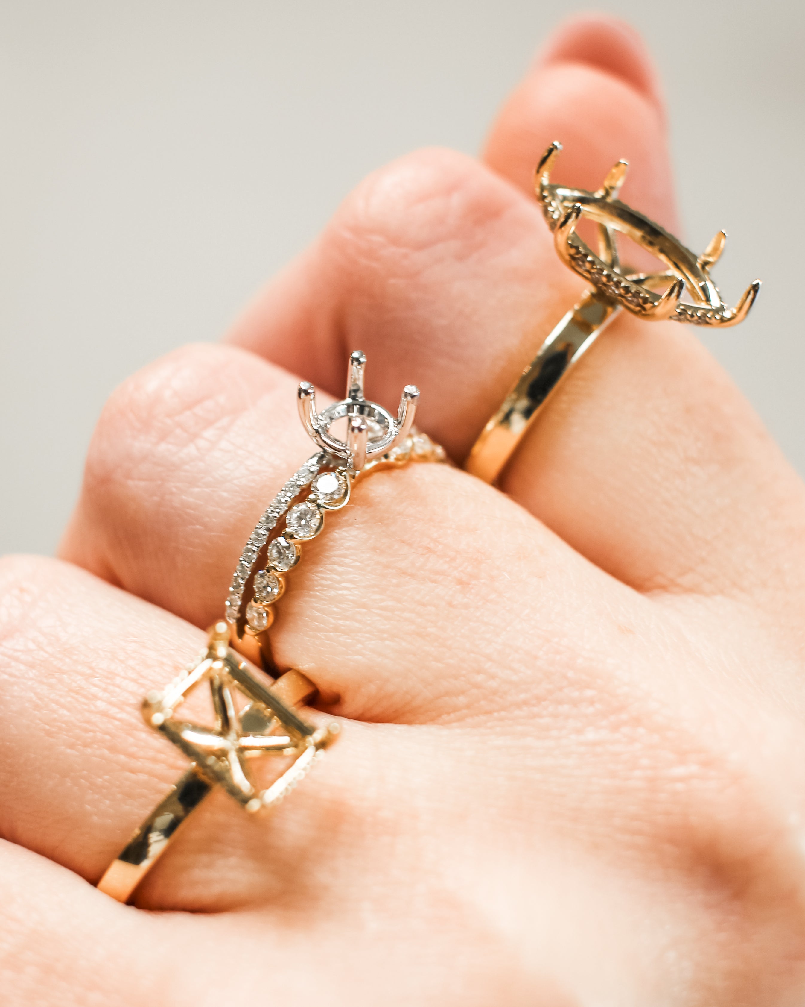 A semi-mount is a ring setting that’s ready for your dream center stone. It includes the band and any side stones or detailing, but leaves the center empty so you can choose the perfect diamond or gemstone to complete the look. Whether you’re starting from scratch or upgrading a family stone, our semi-mounts give you the freedom to create a one-of-a-kind ring that reflects your style. Not sure what stone to choose? Our experts are here to help you find the perfect fit.