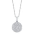 14 karat white gold necklace with a circle shaped pendant set with 1.02 carats total weight of small round brilliant cut diamonds