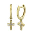14kt yellow gold diamond cross huggie earring, 0.04ct total diamond weight, hinged huggie style