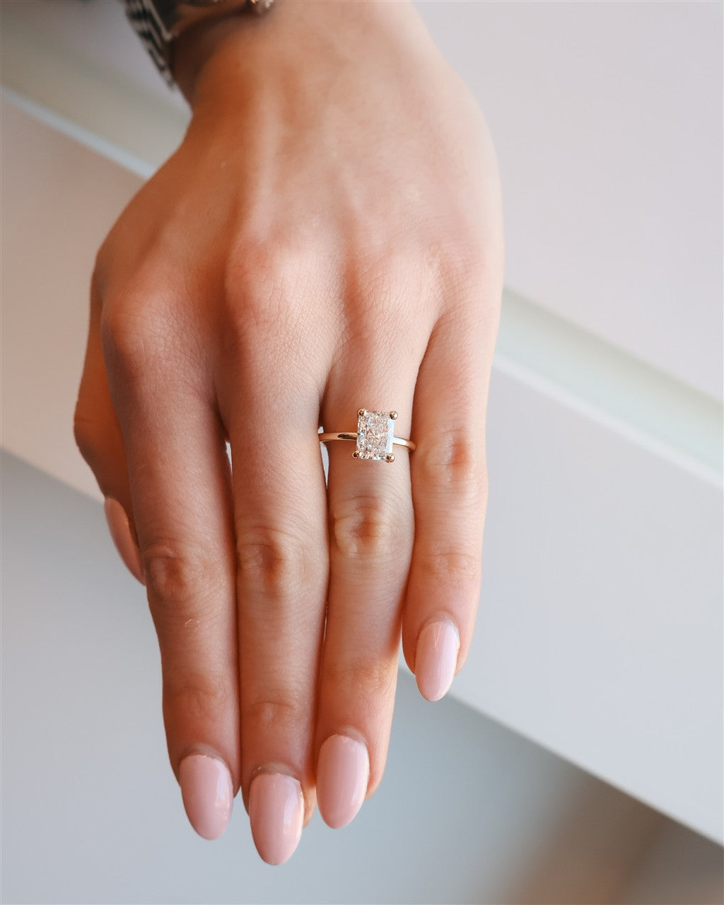 14 karat yellow gold 2.06ct radiant solitaire diamond engagement ring with 0.08ctw hidden halo