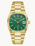 Bulova Super Seville, gold tone stainless band and square case, green dial