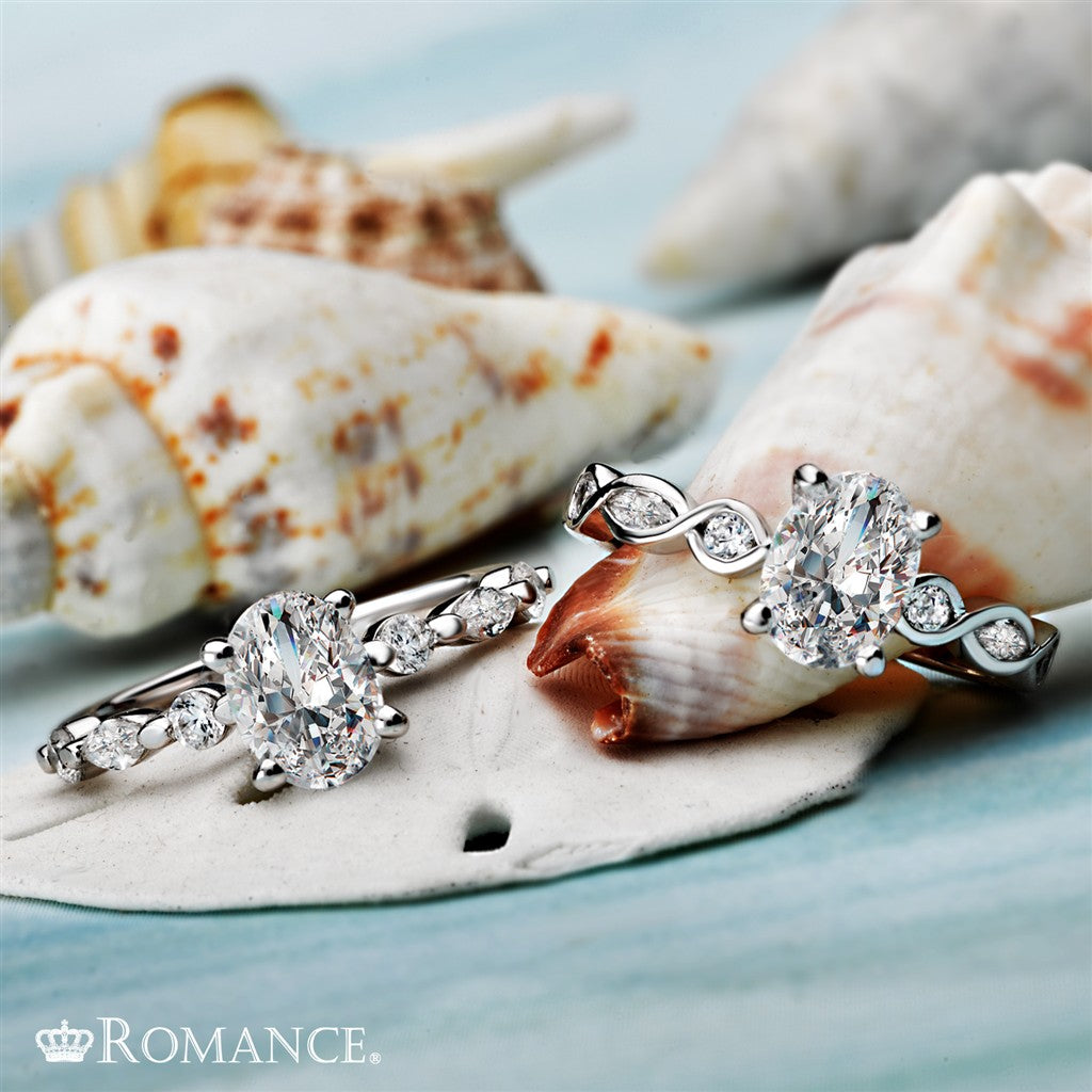 14kt white gold 0.63ctw shared prong east-west set marquise diamond semi-mount bridal with east to west wedding band (fits 7.5x5.5mm oval--only size down 1/4 size-- approx. 3 weeks to order to fit)
