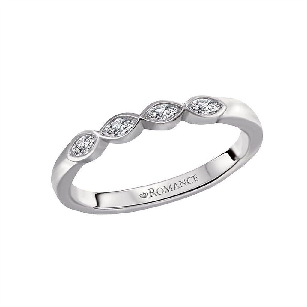 14KW 1/7CTW Marquise Diamond Bezel Band